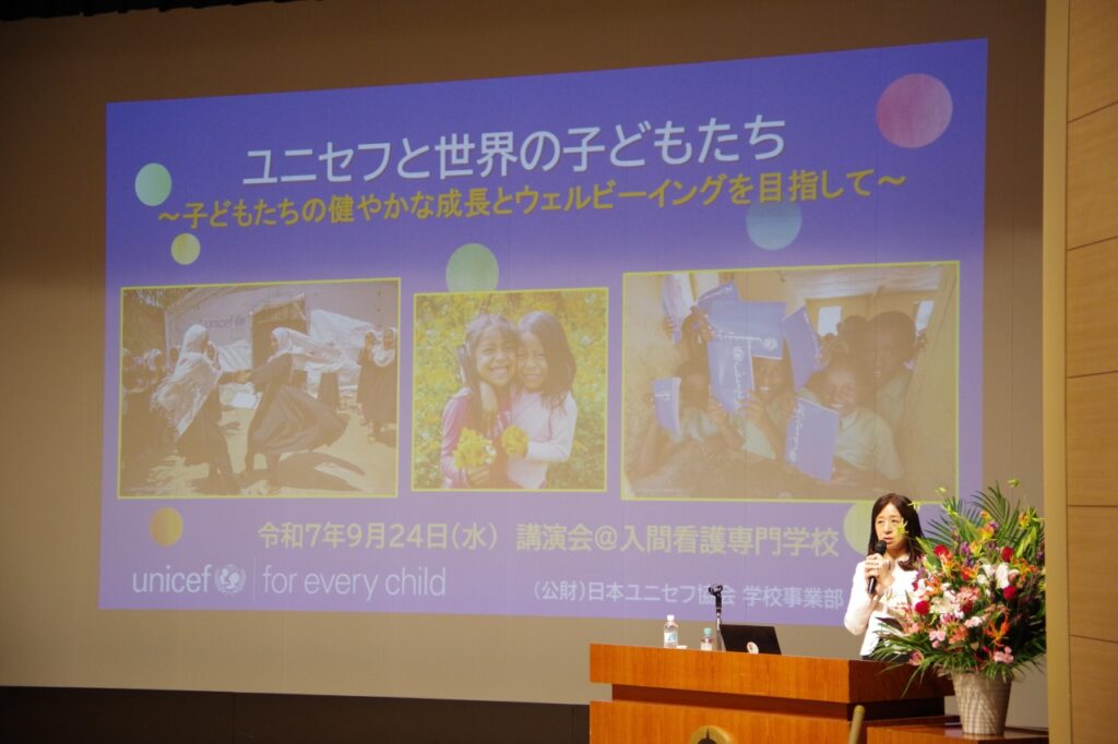 入間看護専門学校では講師に日本ユニセフ協会顧問の池田礼子先生をお招きし、「ユニセフと世界の子どもたち 健やかな成長とウェルビーイングを目指して」をテーマに令和7年度講演会を開催しました。 日本で生活している私たちにとっては、考えられないよ... -